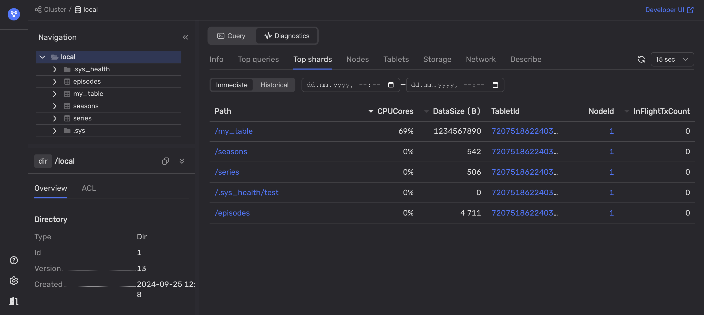 Additionally, the information about overloaded shards is provided as a system table. For more information, see History of overloaded partitions.