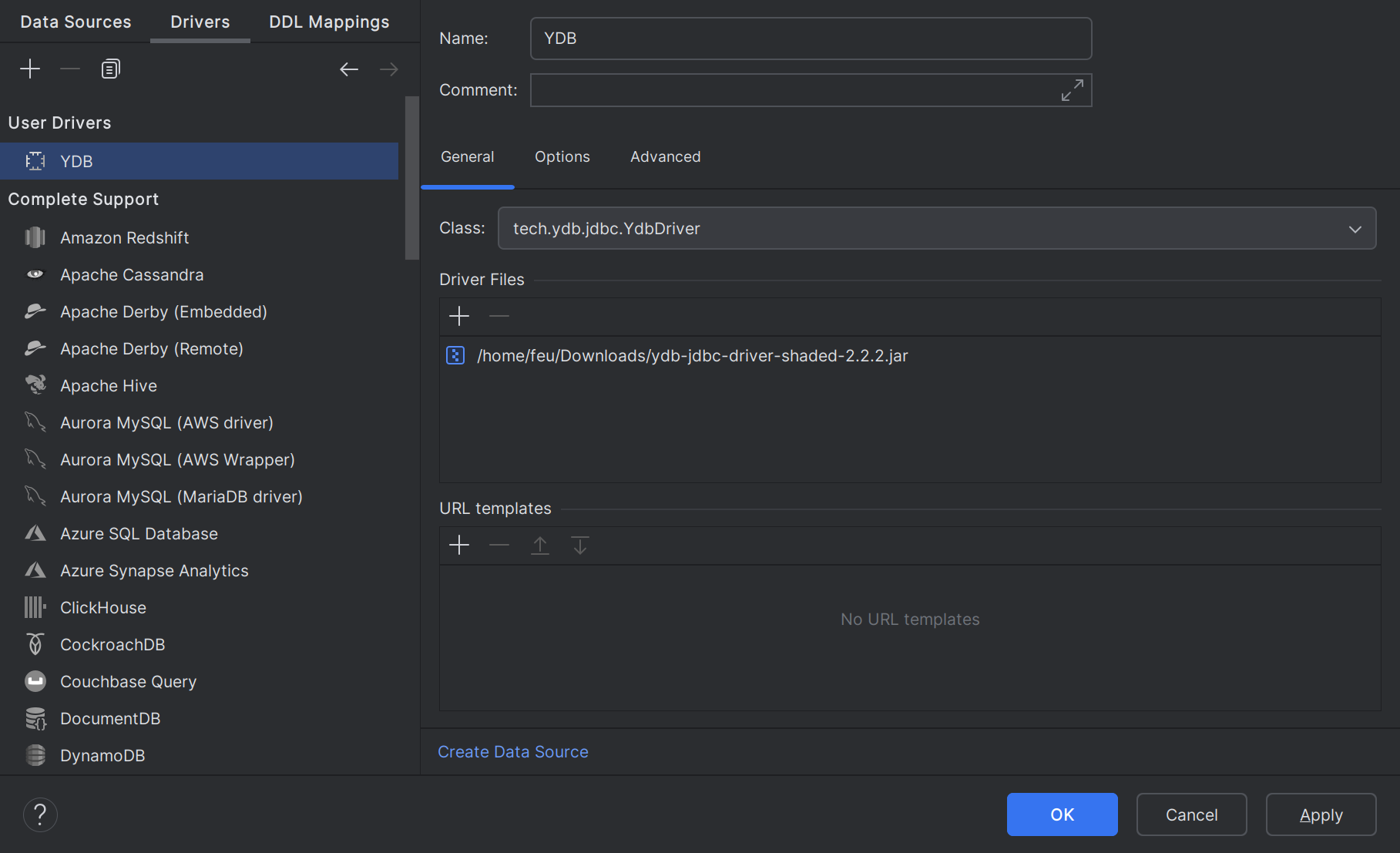 ydb-jdbc-driver-shaded-<driver-version>.jar) и нажмите кнопку OK. -