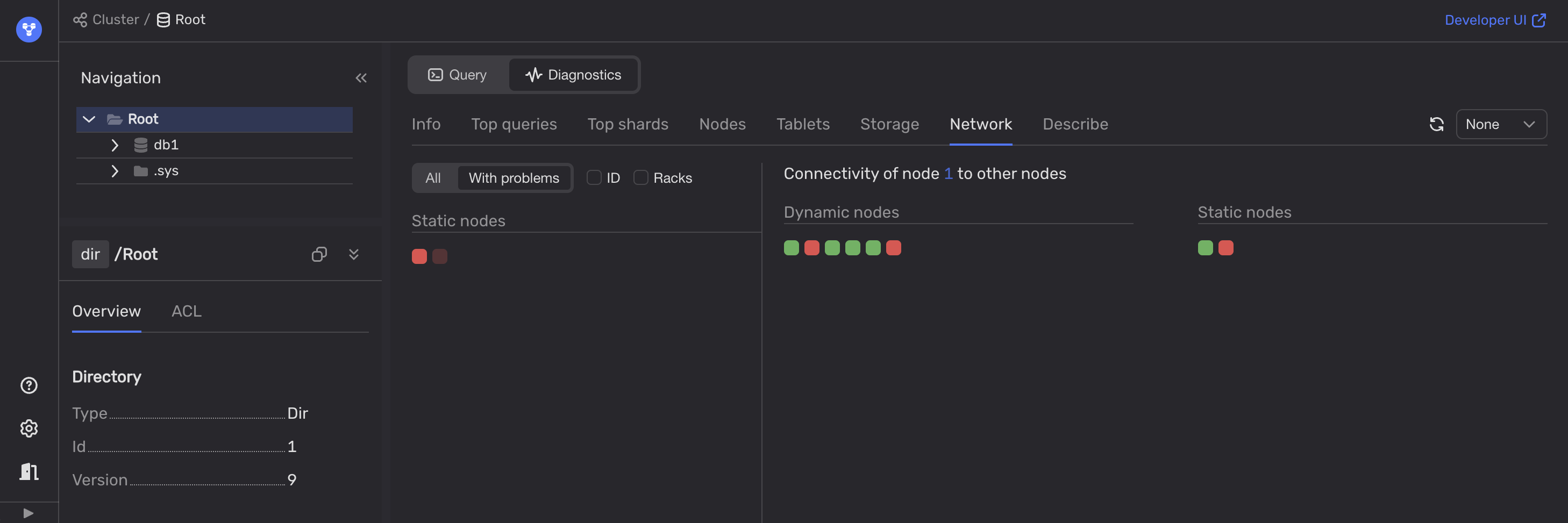 Для диагностики сетевых проблем используйте опцию healthcheck во Встроенном UI: